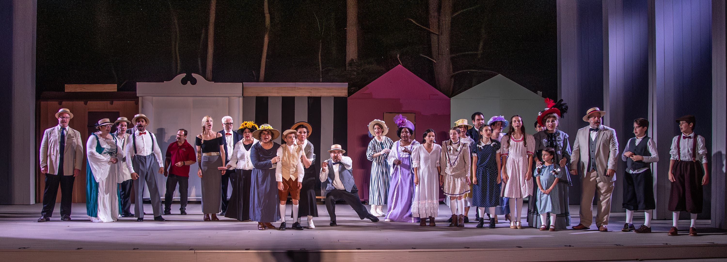 The costumes provided by costume coordinator Gina Rea and Renee Purdy and the Warner Theatre Costume Shop help bring us to the era, with especially lovely millinery for the ladies. There were few minor sound issues, although most of the outdoor technical aspects worked very well.