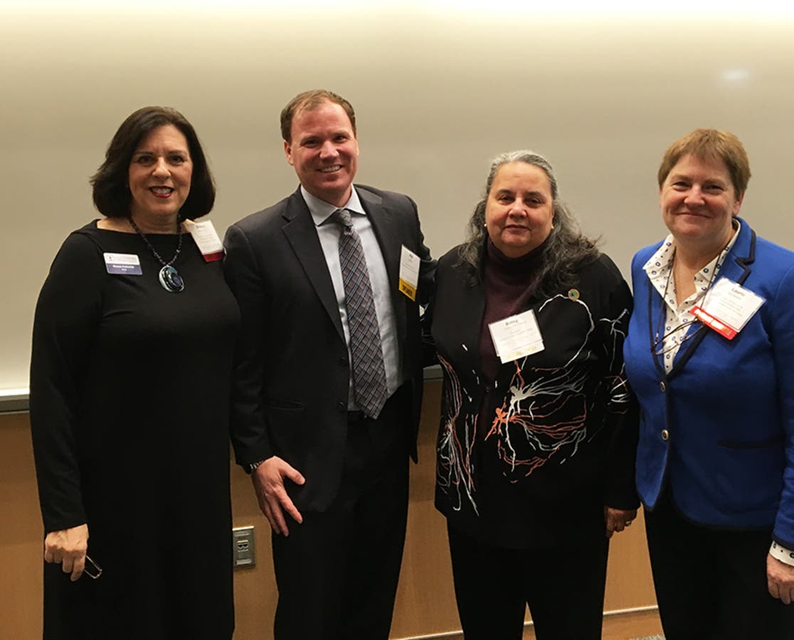 Pictured: (L-R) Dianne Palter Gill, Ed. D., Dean, Corporate and Professional Education, North Shore Community College; Philip Jordan, Executive Director of the Economic Advancement Research Institute and Vice President of BW Research Partnership; NVCC President Daisy Cocco De Filippis, Ph.D., NVCC Director of Community and Economic Development, Laurie Hornbecker.