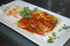 with chili sauce and sweet corn, the Mexican sweet corn soup with tortilla strips and touch of sour cream, and the mole lamb shank with fall greens and sweet potato puree.