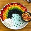 For the clouds you could use cauliflower florets and the pot of gold could be the coined carrots. Arrange the vegetables into the shape of a rainbow and add the cauliflower to the ends for the clouds.