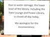 The library is now cleaning up the mess, with the basement now off-limits to the public. Basement computer rooms will need to be closed again later in order to replace the carpeting.