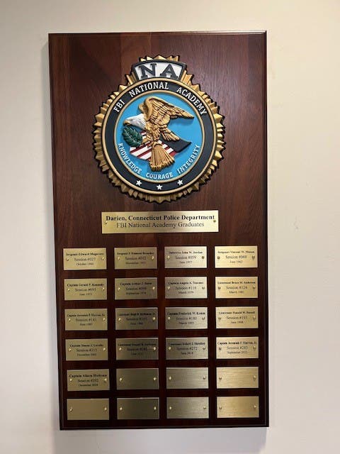 Hudyma's name will be added to a special plaque at the Darien Police Department that commemorates the achievements of the Darien officers who have graduated from the FBI National Academy dating back to session No. 27 in 1944.