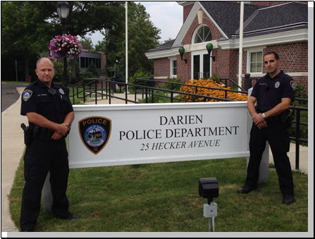 Moura (left in photo) comes from Bridgeport Police Department where he has been an officer for three years. His Feidl Training Officer Michael Dos Santos (right) is a former Bridgeport officer as well and has been with Darien for four years.