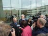 Riccio and Jennings spoke once to reporters inside the courthouse and then again outside, mostly for television reporters. Each said they would have very little comment about the case, and each made very brief statements.