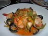 We skipped past the Ahi Tuna Burger with chipotle aioli, the NY Strip Steak, and Slow Roasted Half Chicken, though all of those sounded mouthwatering, and went for the Seafood Stew served over basil (green) fettuccine with a saffron broth.