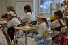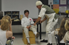 The Middlesex students rotated through ten stations depicting various aspects of colonial life, ranging from the lives of soldiers and spies of the Revolution, traditional colonial dress, and a white smith. A member of the 5th Connecticut Regiment lead a demonstration at each station including a “leg amputation” and a “brain operation” at the colonial medical station.