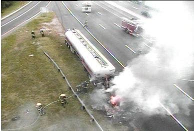 Original story: The right lane of I-95 southbound between exits 13 and 11 is closed due to a tanker truck fire.