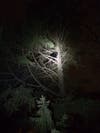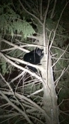 The animal was eating from bird feeders that were mounted on or near the deck. After a short time, the bear left the property with a bird feeder in its mouth and subsequently climbed a nearby tree.