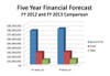 The "Five Year Forecast" for budget and revenues is a "worst-case scenario," but shows what areas of town government are expected to grow more.