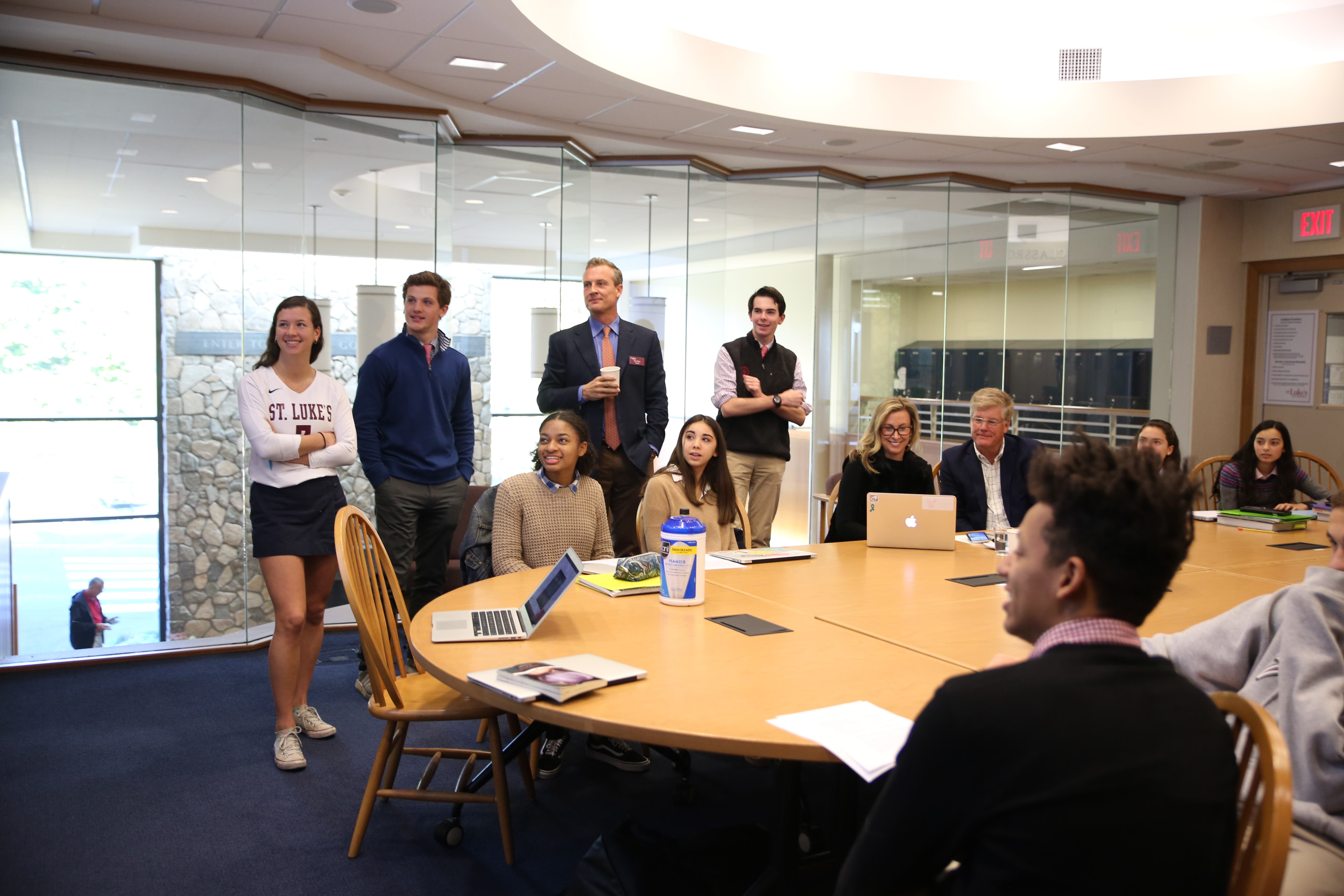 Several St. Luke’s parents and trustees participate in The Power of Brand offering insights and critiques as students develop brand pitches. These SLS Mentors include: Mike Gaumer, the President of Vineyard Vines; David Pakman, Partner at Venrock and co-founder of Apple’s Music Group; Rich Riley, former CEO of Shazam; and Chris Wearing, Vice-Chairman of Teneo Holdings.