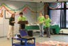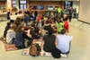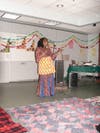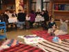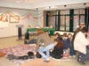 The evening began by each guest picking a slip of paper with either a picture of a windmill, an elephant or a platypus. The significance of these were to put you in a social class where you would then have your meal. The windmill signified the upper class, the smallest group, who were seated at a set table and served a meal of salad and lasagna. The next group, the elephant group, represented the middle class. This group slightly larger in number, sat at tables and helped themselves to soup, bread and cider. The platypus group represented the largest group of people-the lower class. The guests who ended up in this group sat on blankets on the floor and feasted on white rice and water. Yum!