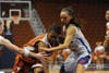 Coginchaug's Jessica Solomon drives to the basket, scores and gets fouled. She hits the free throw to put Blue Devils ahead 37-27, their biggest lead of the game. Timeout Capital Prep with 5:13 left in third quarter.