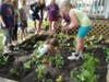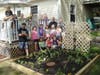 The coaches met Amandaβs family just before 9 a.m. They pointed out a general area where they would like the garden to go. Work began promptly at 9 a.m. with players and parents digging a trench for the boards, pulling up grass and digging up Higganumβs best kept secret β rocks! By 9:30 or so, the landscape timbers were in place and the players and parents were transporting loads of dirt barrel by barrel over to the vegetable bed. Before long, the players were planting beans, lettuce, tomatoes, zucchini, eggplant and marigolds in the garden. Even Amandaβs children were getting into the action. Decorating touches were made and the garden was watered. By 10:30 a.m. the amazing garden seen below was completed, right on schedule.