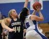 The Cougars did what good teams do, they seized the opportunity and went on an 8-0 run. Five of the points came from Shaina Rowley in the first minute of the second quarter. Rowley converted a steal into a layup in the opening seconds. Fouled on the play, she hit the free throw for a 15-8 lead. She scored again on a baseline drive to make it 17-8. Later, Shawna Sqwarek scored underneath and was fouled for another three-point play and a 20-8 advantage.