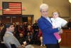 Another moment of levity broke out when Liz Frazier, director of Even Start, accompanied by mothers and children, walked to the speaking area with an infant girl on her hip and Wyman offered to hold the child so she could speak.