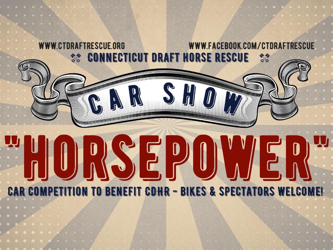 You’re invited to the first-ever car show at The Farm at Carter Hill (86 E Hampton Rd, Marlborough, CT 06447) on Sunday, June 11th to benefit the horses of the CT Draft Horse Rescue! Car entries must arrive between 9-11am. General admission starts at 11am. Car entry tickets and general admission tickets are available through Eventbrite https://www.eventbrite.com/e/horsepower-tickets-603601717987. Cash entries are available during the day of the event. Awards will be presented at 2:30pm. There will be live music by the local favorite, "Beth and the Boys". Food and drinks will be available for purchase. There will be raffles and games, trophy awards, and more!