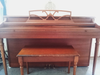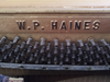 W.P. Haines & Co. spinet piano, circa 1965 (serial number 101635). Bench included. Keys and working parts in good condition. Needs tuning. Some scratches on woodwork, as can be seen in pics. For pick-up only. On first floor location, with one step to garage level. Cash only.