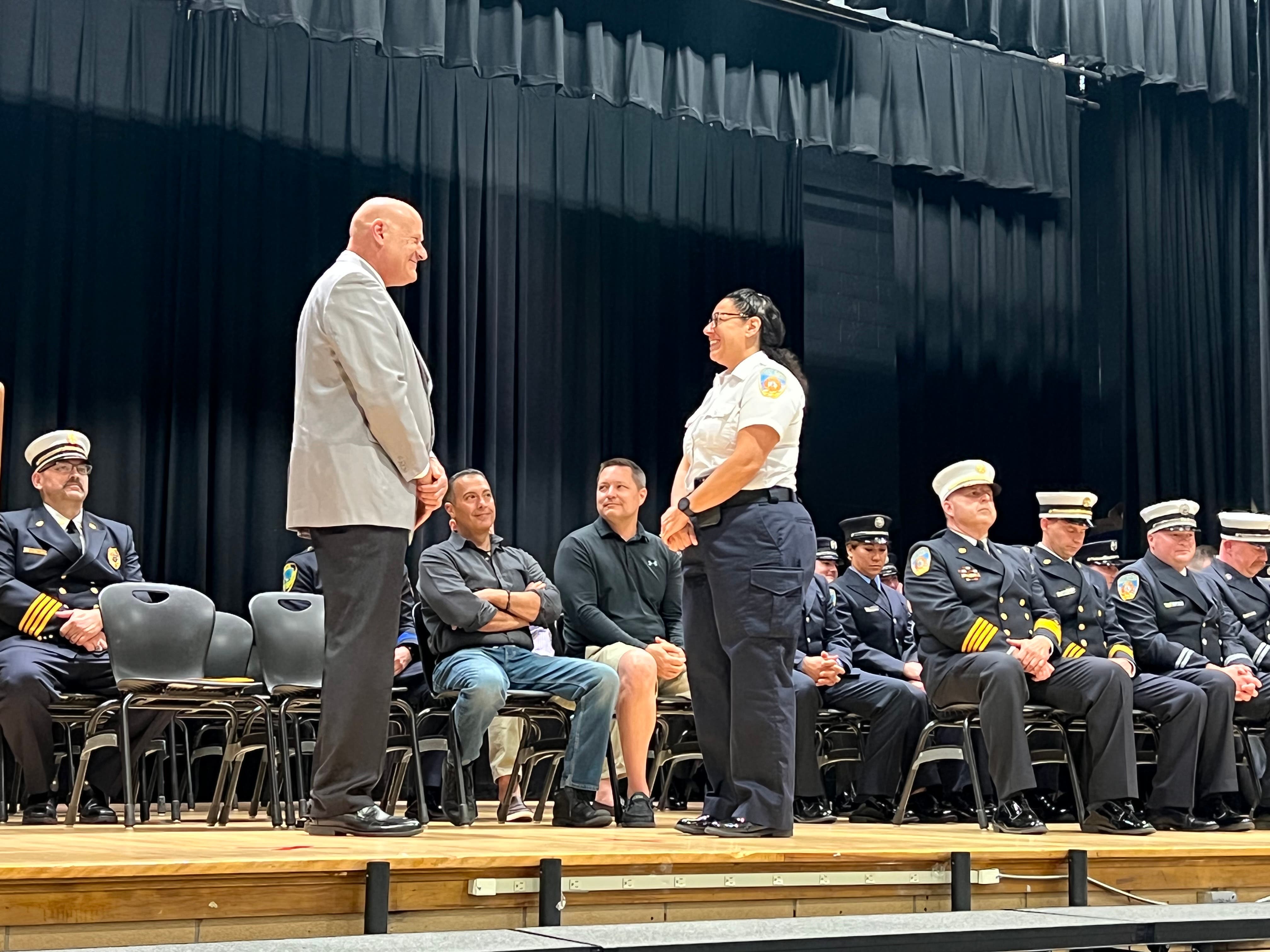 Marcarelli closed the ceremony by congratulating promoted officers and newly hired firefighters for their "dedication and commitment to our department and community."