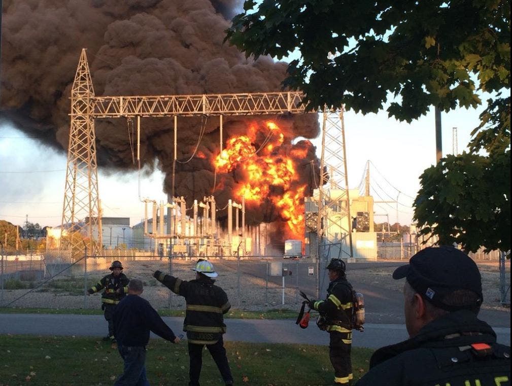 New Haven firefighters are battling a large fire after a transformer explosion at the oil terminal in New Haven Saturday evening.