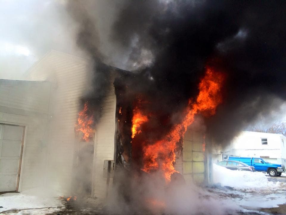 A fire broke out at a commercial building's garage on Tyler Street, and firefighters slipped on the ice.