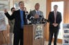 Local leaders, along with members of the Victoria Beach Condo Association, held a press conference Thursday at the town beach to discuss the rebuilding of the condo complex's berm, which was damaged during the Irene and Sandy storms.