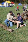 Activities began with a demonstration on how to safely use and handle an ax. Some of the older scouts were able to use the ax, and younger boys had an opportunity to contact split wood to be used as kindling.