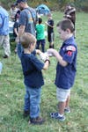 After a delicious dinner was served, the boys gathered for campfire activities. New to this year's campfire was a program that included campfire songs, den cheers, and some very funny skits performed by the boys. I still can't get the "Pizza Hut" song out of my head.