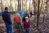 The next morning, after a delicious breakfast of eggs and sausage, the boys were led on a hike through the woods to one of the area's geocache sites.