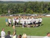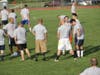 After the game, there was a picnic where everybody enjoyed hot dogs, hamburgers, and side dishes. Players and fans brought the items and volunteers cooked them up.
