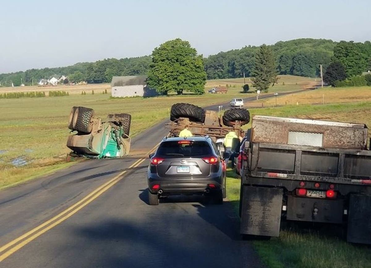 The crash was near the Frog Hollow-Crane Road intersection. The truck was carrying 6,000-gallons of liquid manure, 3,000 of which spilled onto the road and in to an adjacent field, according to a report.