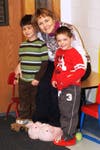 Each month, the entire school population is invited to take part in a special day that focuses on school spirit. Recently, this involved wearing slippers instead of shoes throughout the schoolday. Even the teachers get into the act, as preschool teacher Mrs. Connolly wore her favorite huge, fuzzy, pink, bunny slippers to teach her class that day.