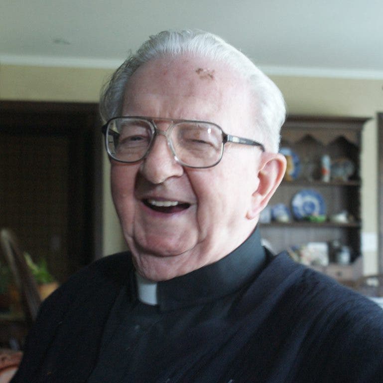 "I have a habit I'm very fond of - breathing," the 96-year-old priest laughed.