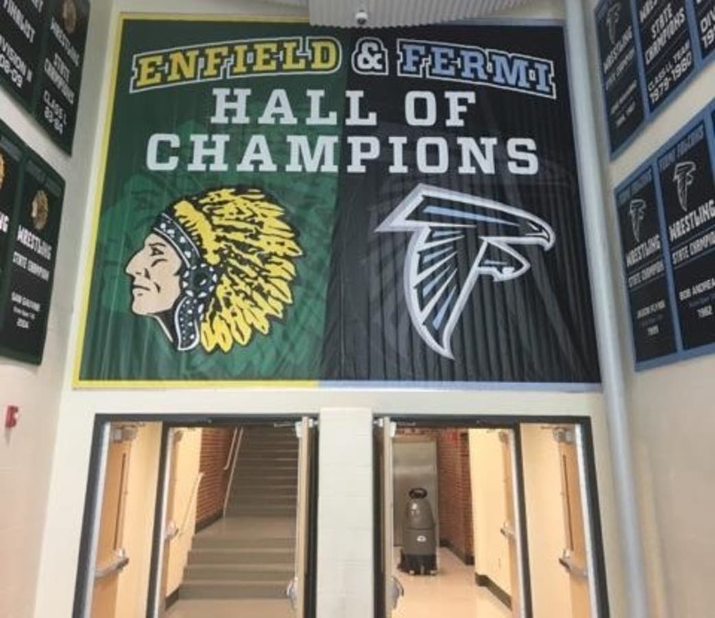 The Hall of Champions, located in the corridor outside the Enfield High School gymnasium and fitness center, will honor state and conference championship teams, as well as athletes and coaches from each school’s history.