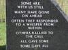 Inscribed on the right-hand column is, "Some are with us still - Many have gone on ahead - Often they responded to a whisper from within - Others rallied to the call - All gave some - Some gave all."