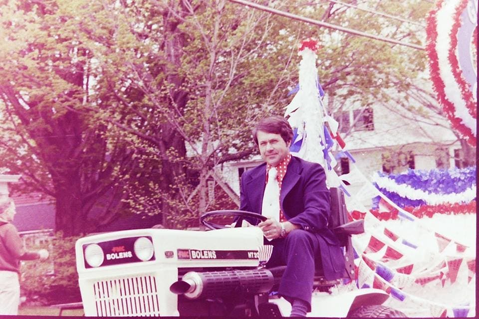 The photo below was taken during the 1976 Bicentennial parade down Enfield Street. This week's question comes in several parts: a) how many Enfield residents at a time can actually surf on that tie; and b) how long does it take for polyester to incinerate on that tailpipe, which incidentally is not on the tail? Post the answer in the comments section below, or on the Enfield Patch Facebook page.