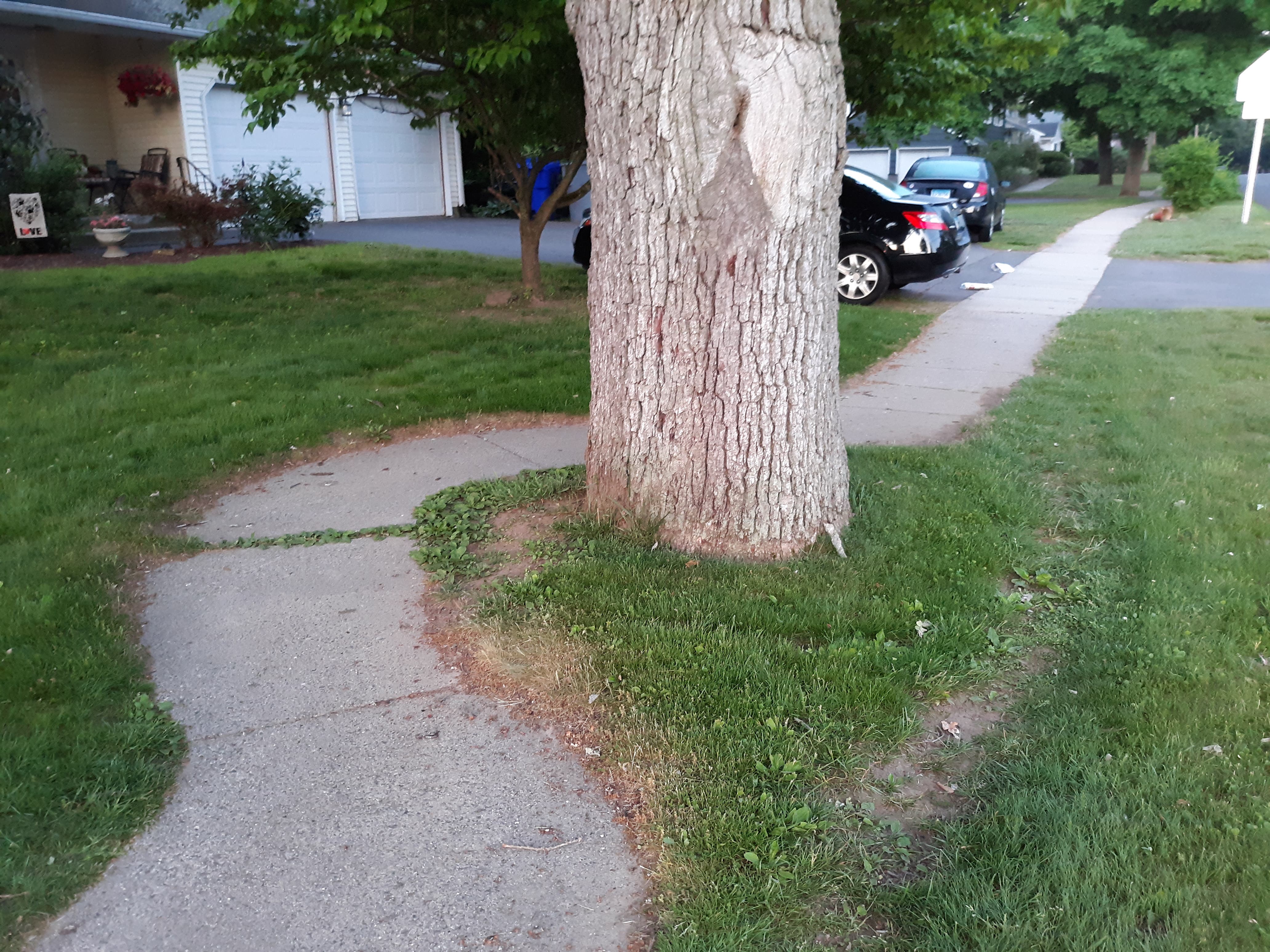 Last week's trivia question showed this odd curvature in a town sidewalk, constructed around an oak tree which has since been removed, and asked readers to name the street on which it is located. The answer: North Street, which had the Southmeadow/High Meadow neighborhood built in 1986-87. Additional new homes were built on North Street, and according to former Mayor Scott Kaupin, "There are two of these on North Street. One may still have a tree "in the middle". Not sure if the developer or the town put these portions of sidewalks in, but I do recall a conversation with then Public Works Director Jack Kazmarski about these. At that time no one wanted to cut down the big and beautiful oak trees that these sidewalks veered around. If you know the back story, this is pretty unique."