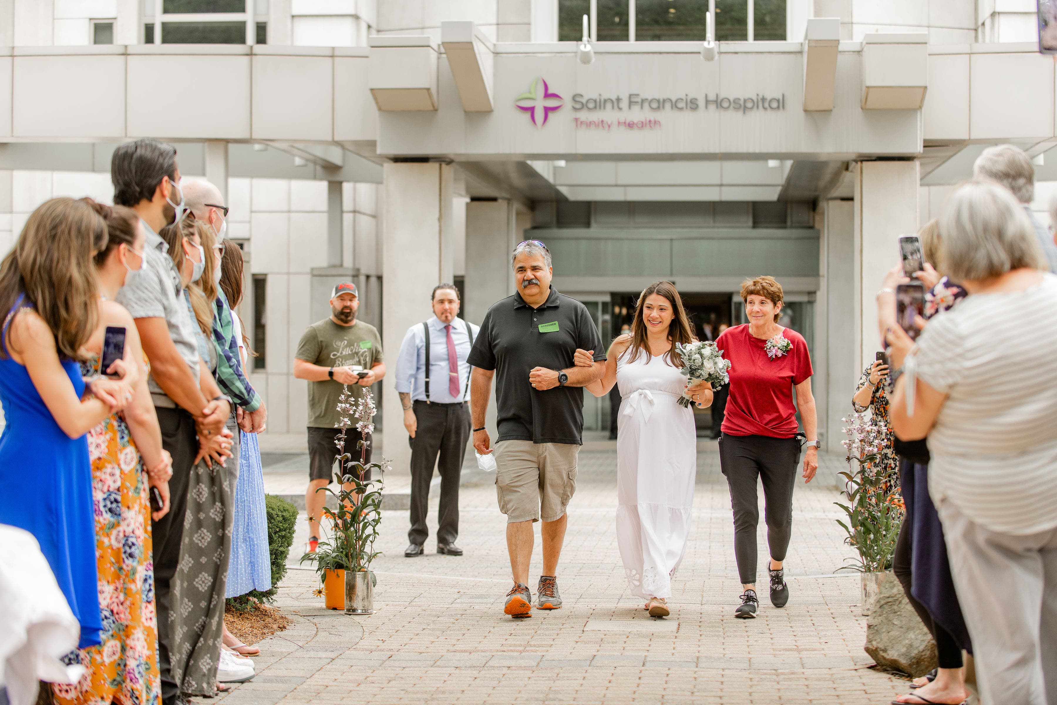 After a week of hospitalization, Joshua returned home for about a week, but returned to Saint Francis on June 9. Last Friday, they were officially married in his hospital room by justice of the peace Peter Devine. That set the stage for an unexpected event the following day.