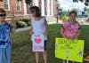 About 50 protesters, many carrying signs, gathered on the front lawn of Town Hall to show their support for former director Susan Lather.