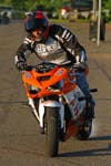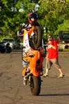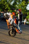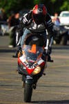“I had a Honda XR80 when I was nine years old," he said. "On more than one occasion, my father warned me that if he caught me riding it fast, he was going to take the bike and cut it in half. I managed to avoid this by riding my bike where he couldn’t see me! I then bought a street bike and started doing wheelies and stunts on the streets ,and got myself into a whole bunch of trouble. It was then I decided to take my stunts to parking lots, and have been doing so almost every day since the spring of 2005. Stunt riding’s a completely different discipline. It took me six months to master a straight-line wheelie without touching the throttle."