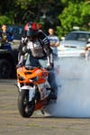 Luke put on two 30-minute shows for the highly appreciative crowd, who cheered and applauded burnouts, wheelies, acrobatics and many other eye-opening stunts. With driving rock music and an enthusiastic commentary as a backdrop, he pulled out all the stops to display his considerable bike-riding talents.