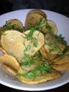 We also ordered a smoky grilled eggplant salad that was flavorful and great, Grape Leaves with perfectly cooked rice wrapped in a juicy leaf, and a Fattoush Salad (Romaine Lettuce, juice filled tomatoes, crisp cucumbers, snappy onions, silky olive oil, and topped with crunchy toasted pita chips). Lastly we ordered their homemade hummus, which is creamy, garlicky and yummy. They also sent out a taste of homemade labne (yogurt), which my Mom really loved.