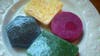 I put them all in the fridge for the night (the websites' instructions said two to four hours, but it was midnight by now). In the morning I hopped out of bed and ran downstairs to my soap. My little jewel-toned scented shapes of satisfaction gleamed up at me, and I've been washing my hands all morning. They actually feel great; softer than normal.