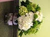 Clip the stems of the flowers in varying heights, placing the taller blooms in the center of your bouquet and the shorter ones around the outside of the arrangement. Cut two or three lengths of green ivy and place them in the bouquet so that they drape over the top of the hydrangea. Add a few green hypericum berries to the mix, set the completed bouquet in a crystal vase and you'll have an elegant, green bouquet.