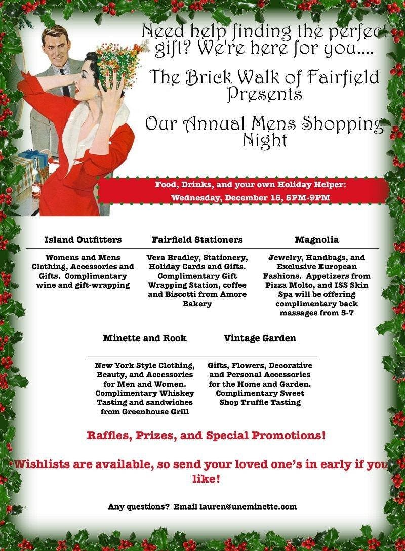 Join all of the fabulous shops at Brickwalk of Fairfield for the first annual Men's Shopping Night!