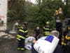 Local police arrived concurrently as firefighters began to extricate the driver using a Stokes basket, transferring him to the awaiting AMR ambulance for transport to St. Vincent’s Hospital.