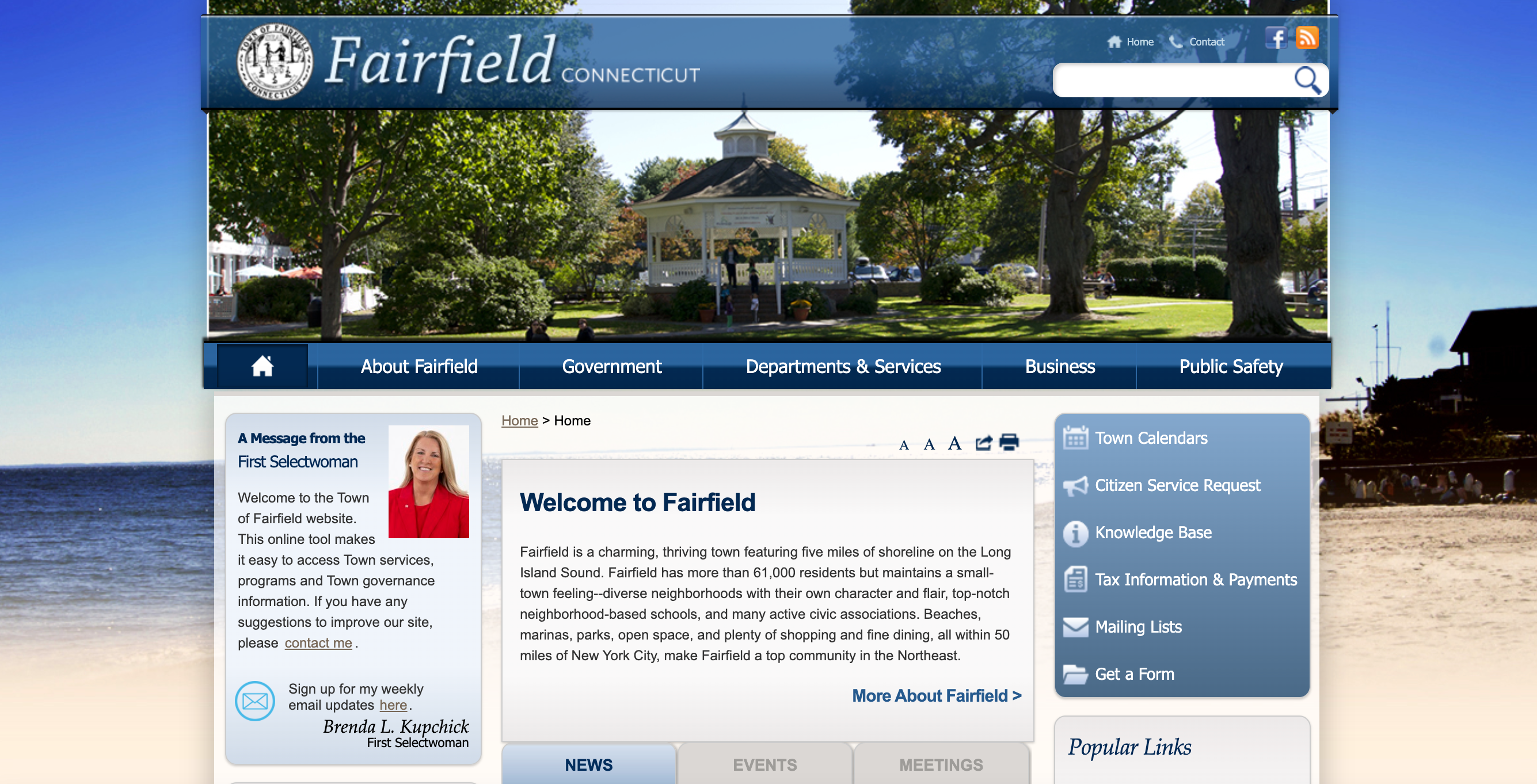 The town's current website, at www.fairfieldct.org, was launched nearly a decade ago, according to Jackie Bertolone, Chief of Staff for the First Selectwoman's Office. See an image of the current site below.