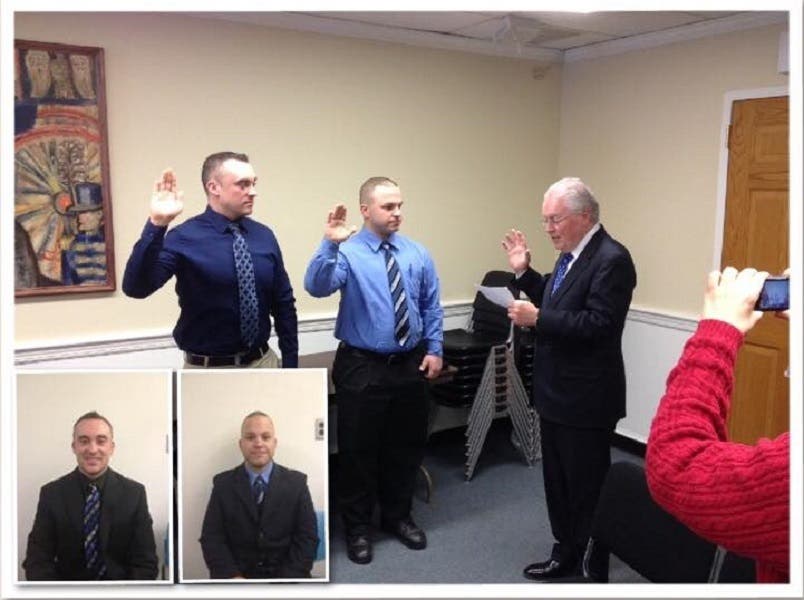 Pictured (left to right): Officer Gorton, Officer Matejek, First Selectman Michael Tetreau.