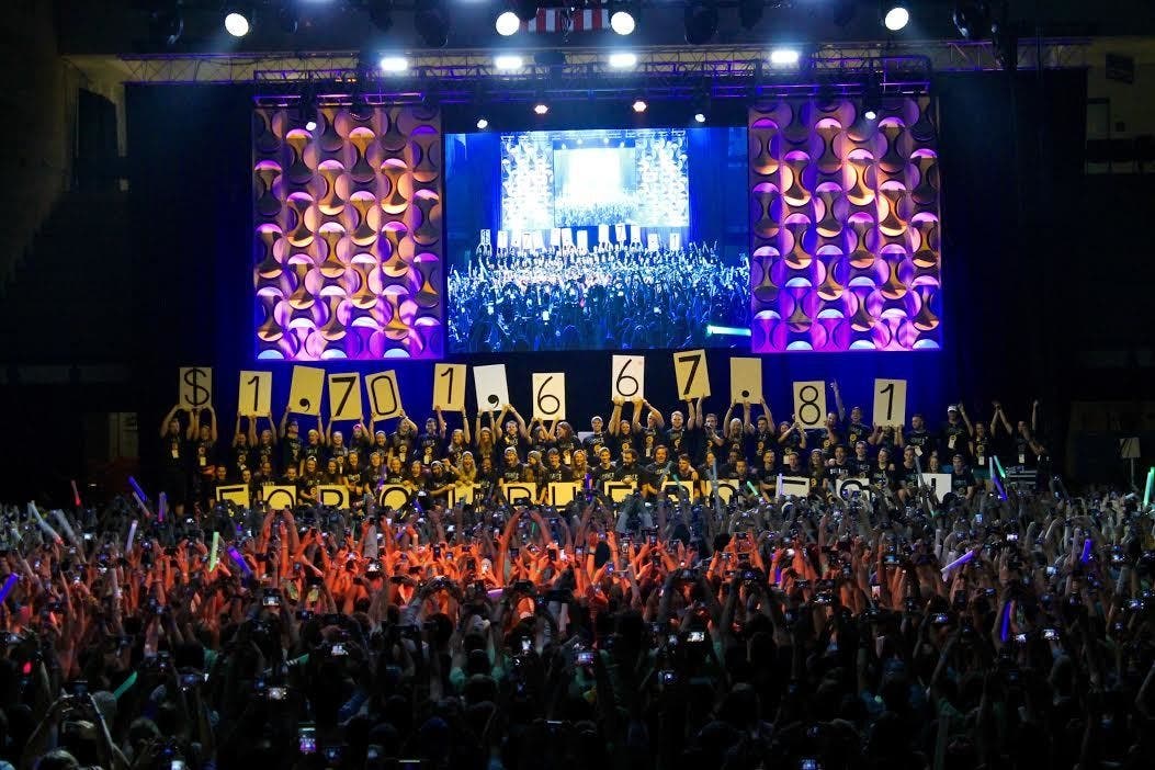 The UDance fundraisers announced their total of more than $1.7 million to benefit pediatric cancer research. Photo courtesy of the University of Delaware.