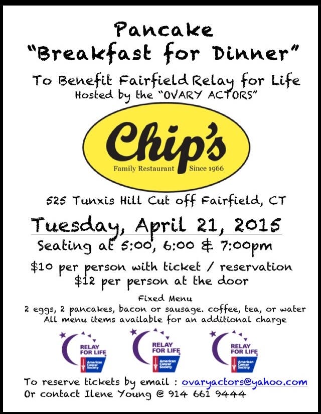 The Fairfield Relay for Life team “Ovary Actors” will be hosting a fundraiser at Chip’s to benefit the cause.