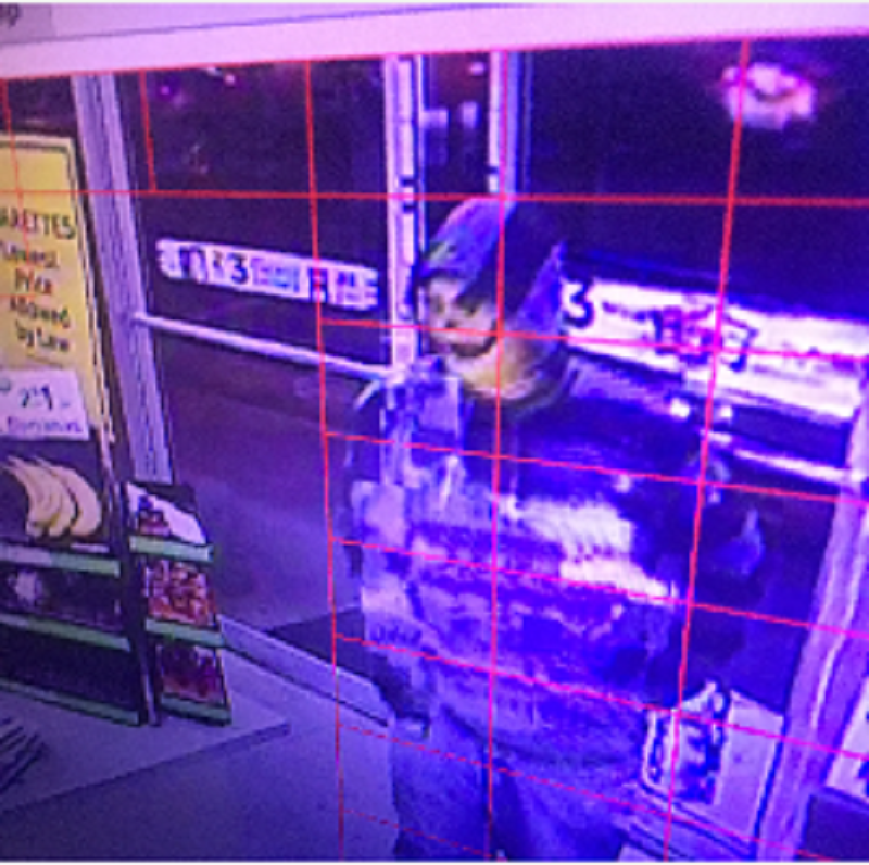 The suspect was described as a male wearing a skull mask and gloves, with a striped hoodie and jeans.